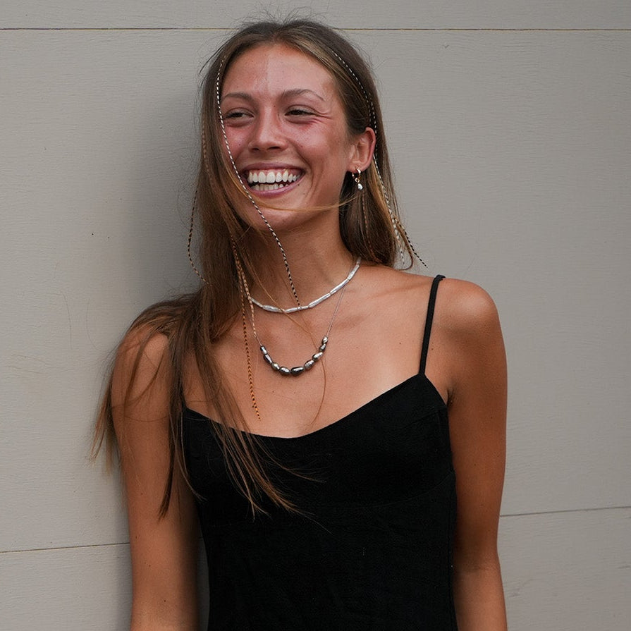 Modern and organic, these gold-filled hoops are adorned with Tahitian Keshi pearls, each one unique in shape with natural metallic tones that shimmer in the light. The irregular beauty of Keshi pearls brings texture and depth, while the sleek gold hoops add a warm, polished finish. Lightweight yet striking, they’re perfect for adding a touch of island elegance to everyday style or dressing up for a night out